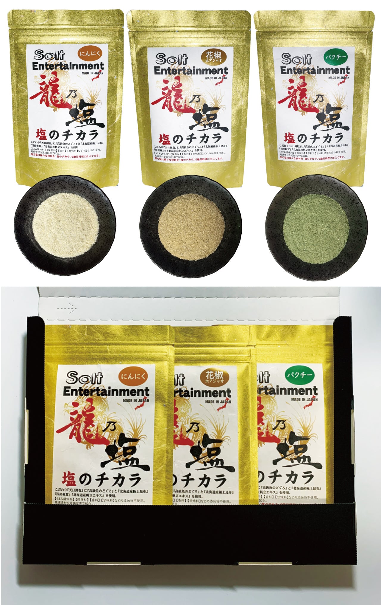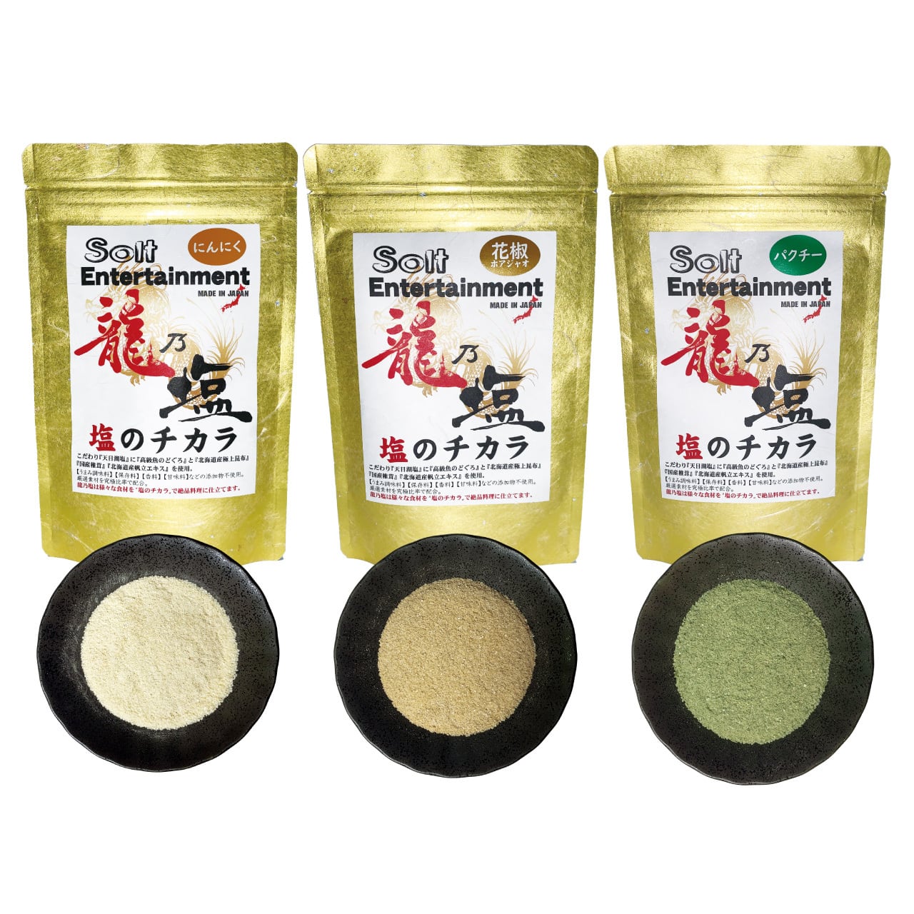 こだわり厳選【龍乃塩】 エスニックセット「3種類」〈にんにく味・花椒味・パクチー味〉 高級和紙チャック袋入り※メール便送料無料