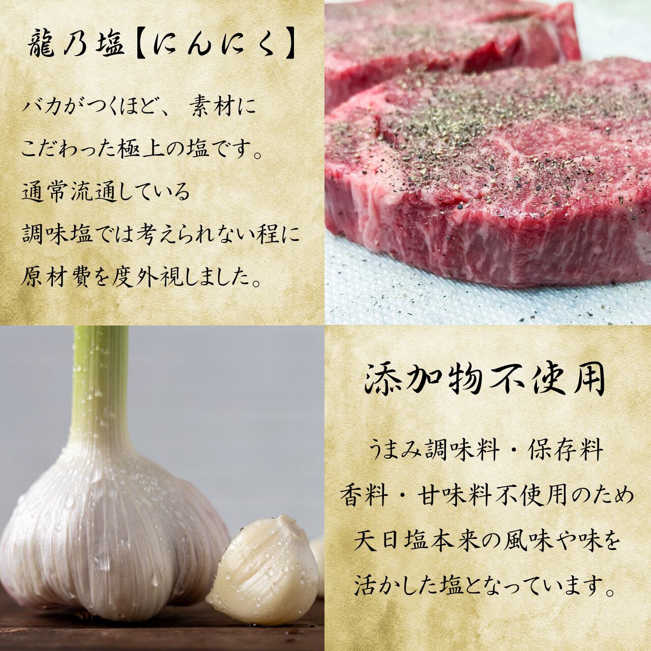 ✅「龍乃塩」は天日湖塩をベースに「高級魚のどぐろ」「北海道産の極上昆布」「国産椎茸」「北海道産帆立エキス」を使用した完全オリジナルの調味塩です。