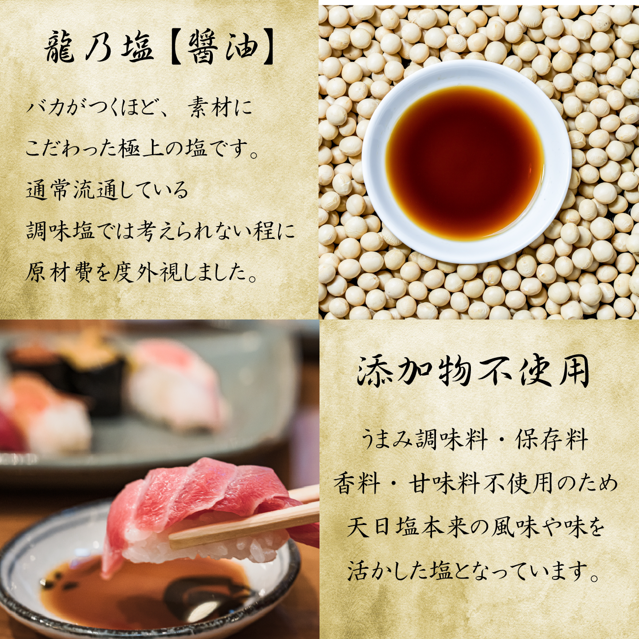 ✅「龍乃塩」は天日湖塩をベースに「高級魚のどぐろ」「北海道産の極上昆布」「国産椎茸」「北海道産帆立エキス」を使用した完全オリジナルの調味塩です。